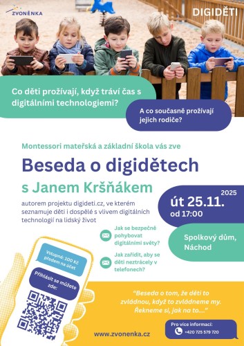 Středa, 05.11.2025MěstoPozvánka na besedu „Digiděti“ s Janem Kršňákem, která se uskuteční 25. listopadu 2025 od 13:00 ve Spolkovém domě v Náchodě.