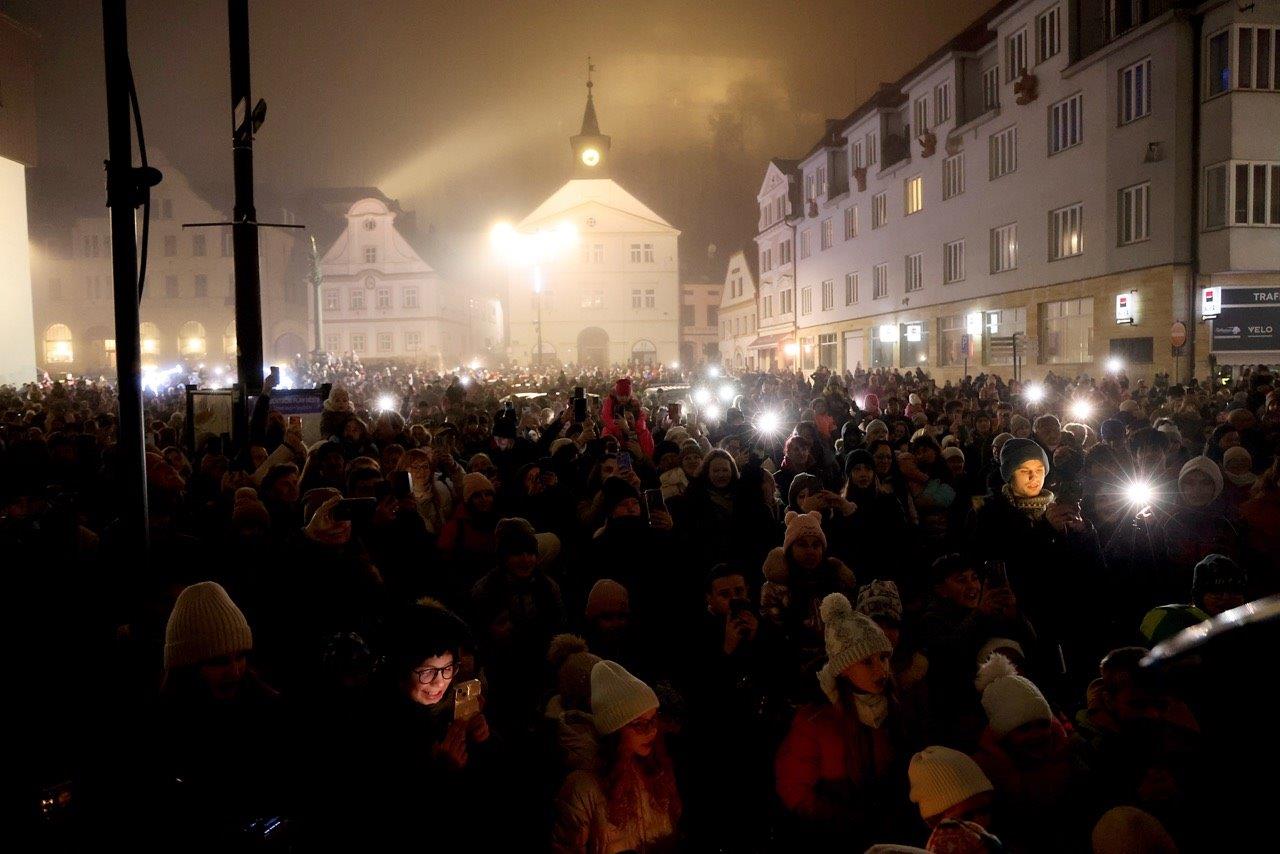 Starosta Jan Birke pak tradičně spolu s dětmi odpočítal okamžik, kdy se náš vánoční strom rozzářil do celé své krásy. Letos pochází přímo z Náchoda - upřímně děkujeme manželům Janě a Miloslavu Klugarovým, kteří smrk městu darovali.