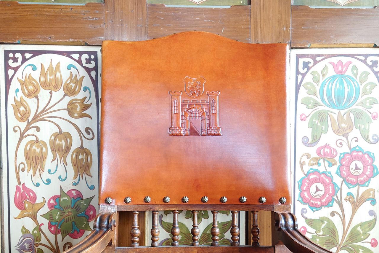 Na modrém štítě stojí stříbrná brána mezi dvěma věžemi. Věže jsou čtyřhranné, každá se dvěma úzkými pravoúhlými okny v přízemí a s jedním širším, goticky zaklenutým oknem v patře, odděleném od přízemí římsou. Věže vrcholí cimbuřím o třech stínkách. Hradební zeď mezi věžemi je rovněž stříbrná, kvádrová, se třemi stínkami cimbuří. Otevřená brána je bez vrat a má vytaženou zlatou mříž. Nad branou mezi věžemi je červený štít se stříbrným dvouocasým lvem se zlatou zbrojí a korunou.