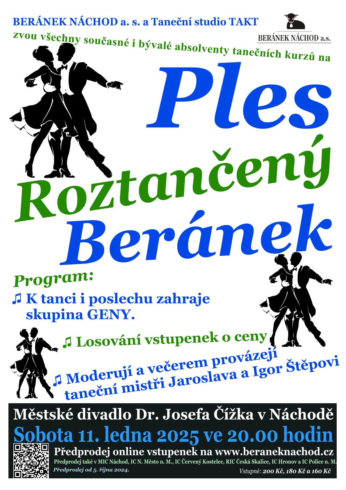 Beránek Náchod a. s. a Taneční studio TAKT vás zvou v sobotu 11. ledna 2025 od 20 hodin na ples Roztančený Beránek.