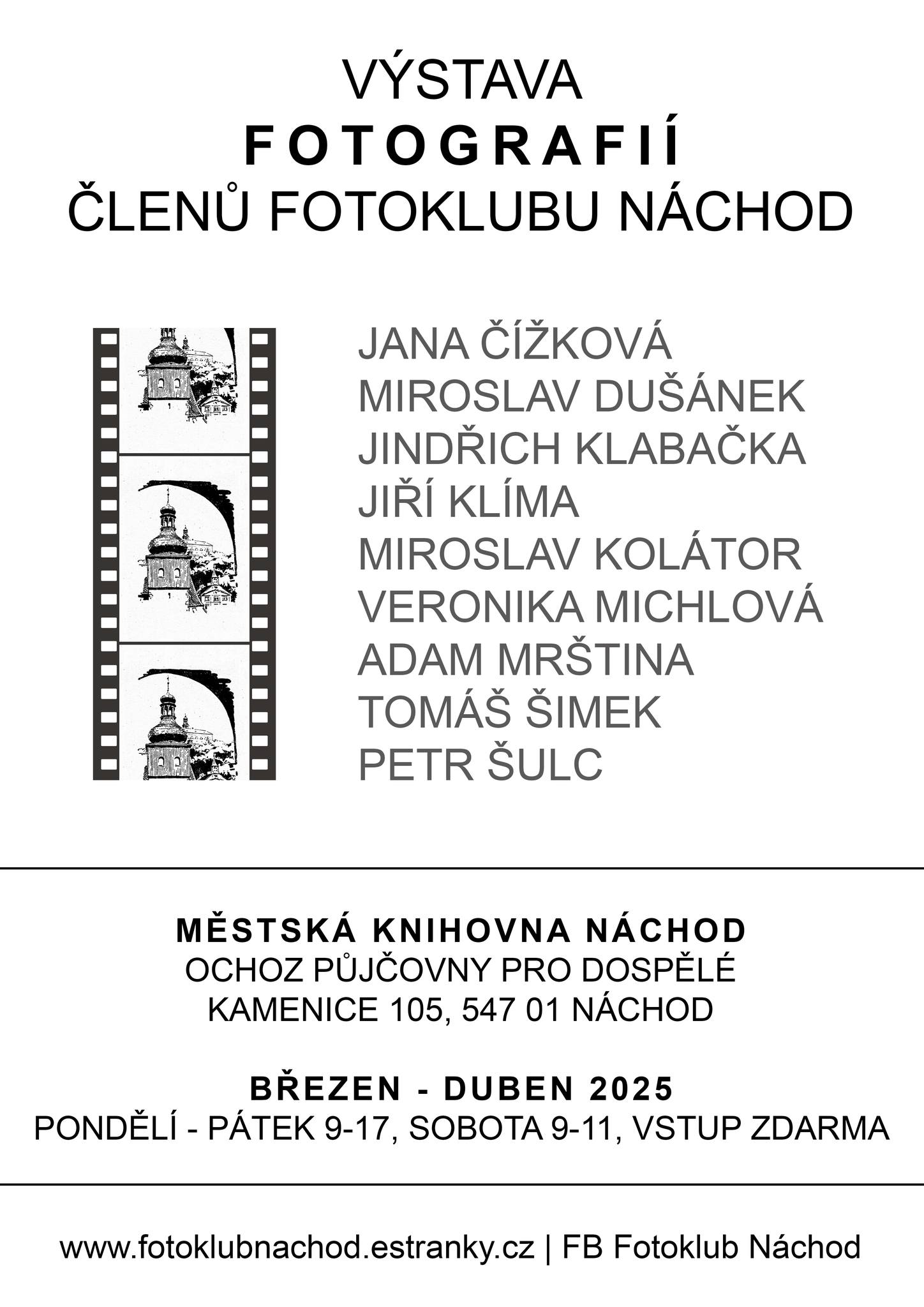 Městská knihovna Náchod vás srdečně zve na první společnou výstavu členů Fotoklubu Náchod, která bude probíhat v měsících březen–duben na rozšířené galerii ochozu půjčovny pro dospělé.